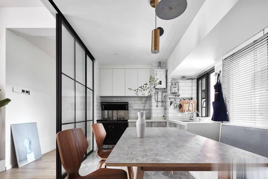 厨房选择了集成灶的设计,方便日常的做饭,开放式的厨房光线也很好。