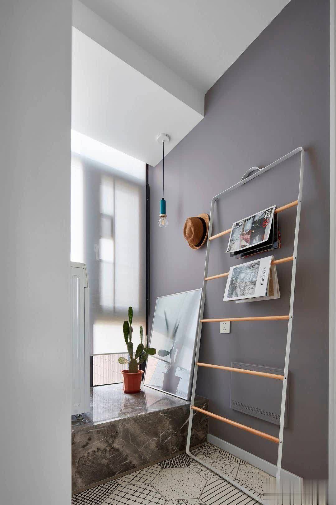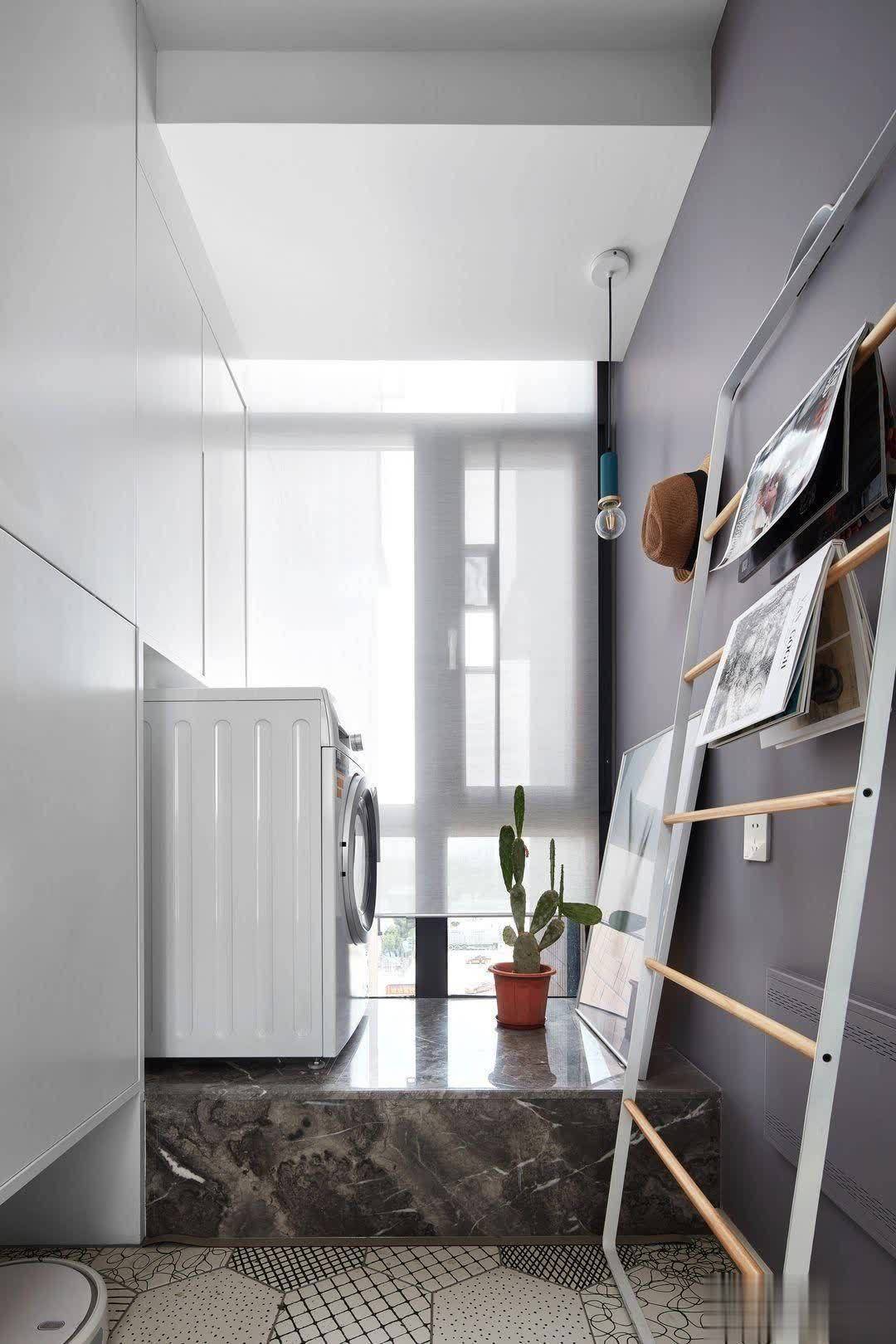 考虑到平时家里会经常用到洗衣机,放置在卫生间或者是卧室旁边的阳台都会有一点影响家人的睡眠,所以装修的时候就把洗衣机的区域设计在了入户这里,使用的时候也不会有噪音的问题了。