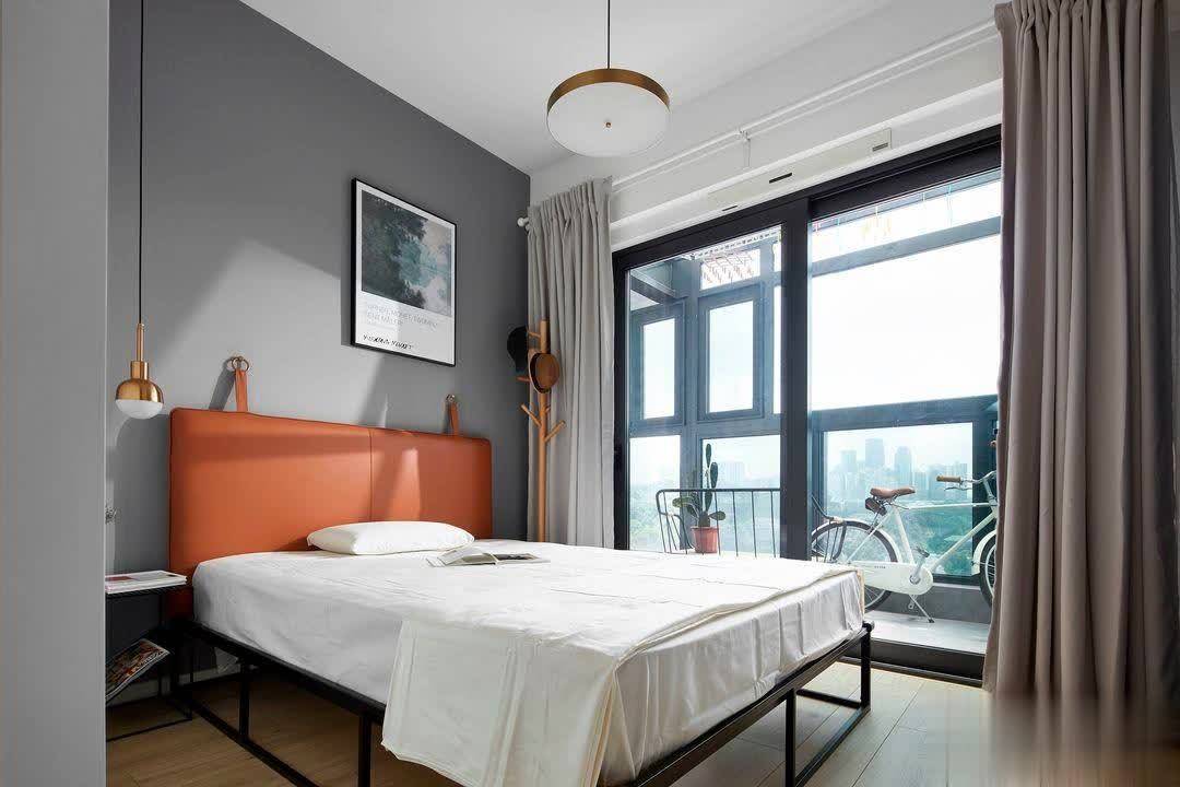 卧室和阳台之间设计了一个玻璃的推拉门,让室内的光线变得更好。